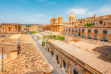 view in Noto, with the Basilica Minore di San Nicolo and Palazzo Ducezio, Sicily, Italy. Chiesa di Santa Chiara.