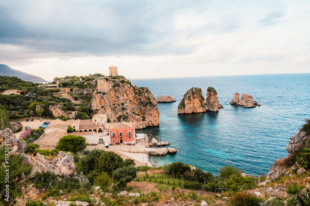 Tonnara of Scopello or Faraglioni e Vecchia Tonnara di Scopello in Trapani Province, Sicily, Italy