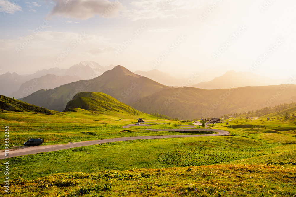 Ra Gusela Peak of Nuvolau group in the Italian Dolomites mountain at Giau Pass in South Tyrol Italy.