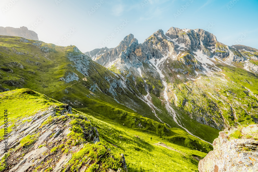 Ra Gusela Peak of Nuvolau group in the Italian Dolomites mountain at Giau Pass in South Tyrol Italy.