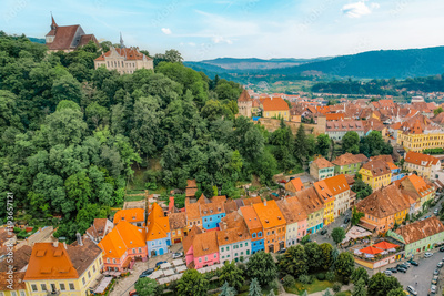 Medieval fortress and fortified citadel of Sighisoara with colorful houses in transylvania.