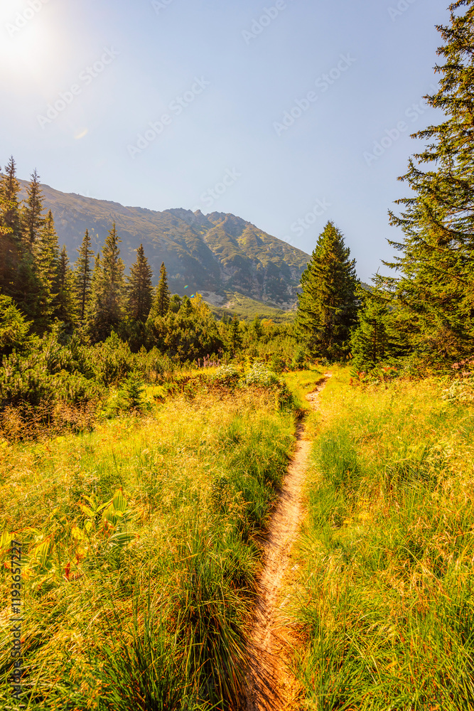 Mountain landscape in National Park Retezat, Romania. Hiking to Lacul Bucura througth Cabana Gentiana