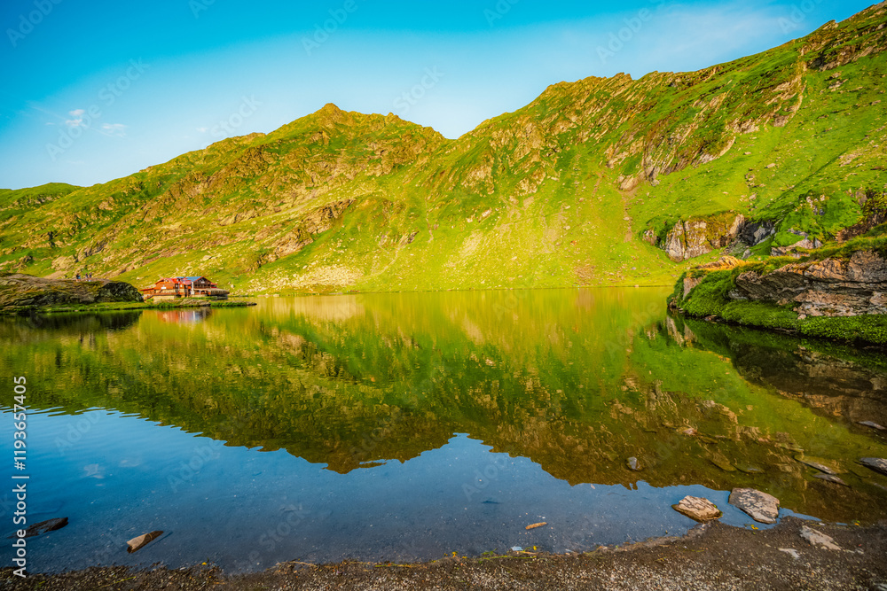 Fagaras mountains with Balea lake on Transfagarasan serpentine road in Sibiu County, Romania.