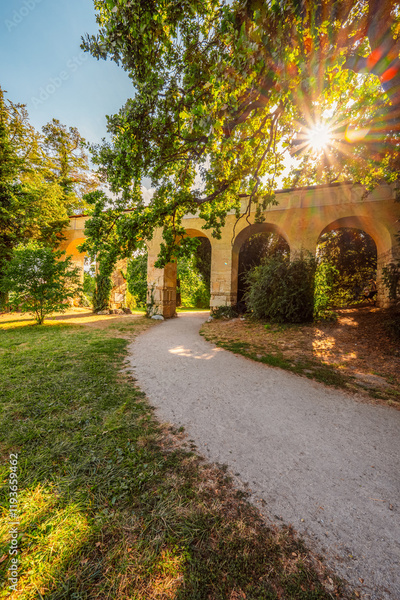Lednice Chateau with beautiful gardens and parks. Lednice Valtice Landscape, South Moravian region. UNESCO World Heritage Site.