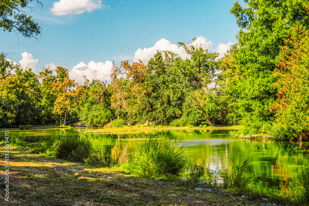 Lednice Chateau with beautiful gardens and parks. Lednice Valtice Landscape, South Moravian region. UNESCO World Heritage Site.