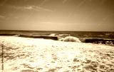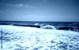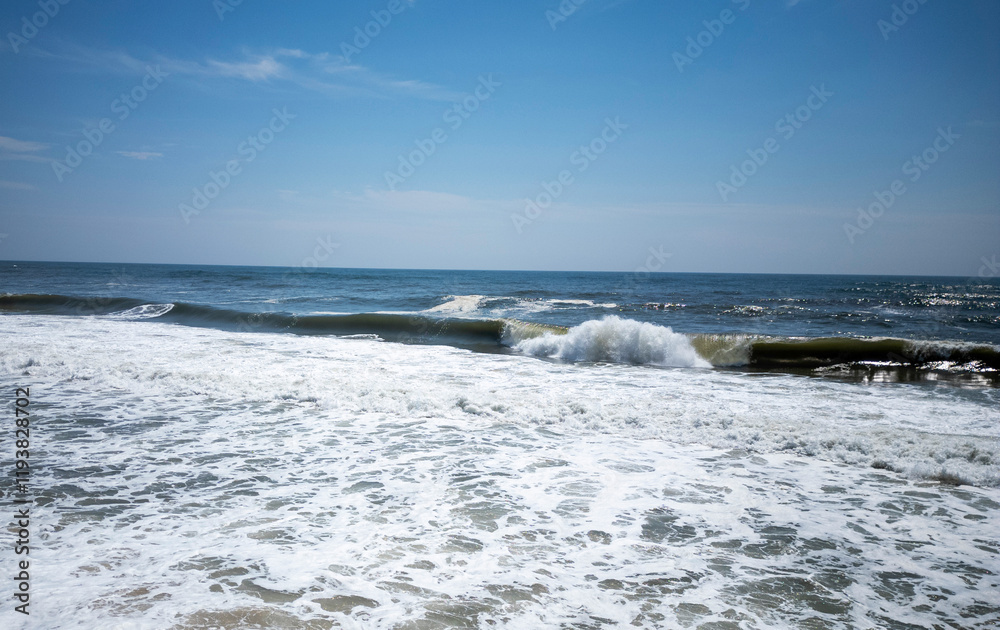 Calm Ocean Waves Gently Lap Against the Shore Under a Clear Blue Sky