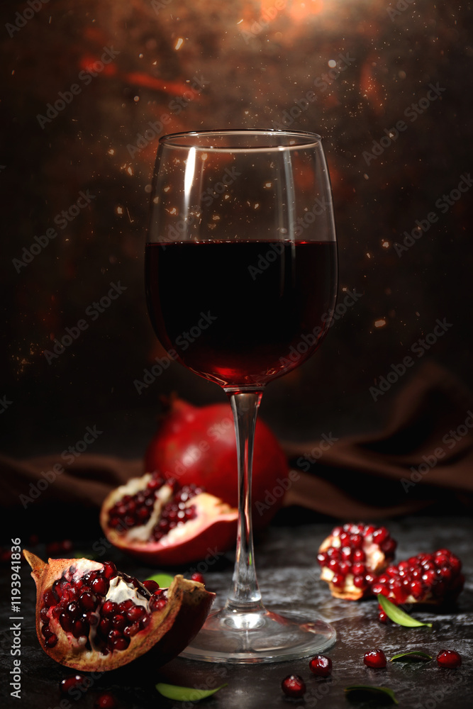 Pomegranate wine, concept of delicious alcohol drink