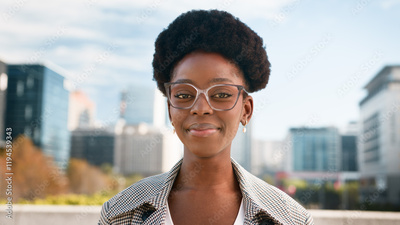 Confident Woman Smiling Outdoors in the City on a Bright Sunny Day