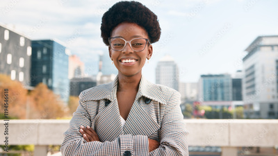 Confident Professional Woman Smiling Outdoors in Modern Urban Environment