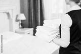 Hotel services. housekeeping maid with linen