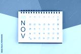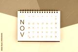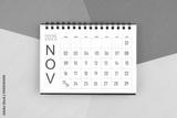 Novemberber 2025 month blank desk calendar on colorful background.