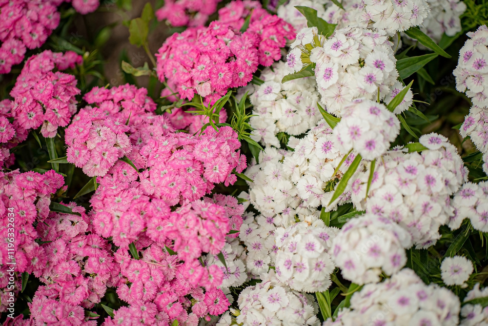 Colorful Dianthus chinensis flowers blooming in the garden.