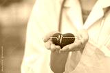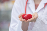 Red heart on hand doctor. heartbeat cardiologist cardiology. health care concept. pulse cardiogram.