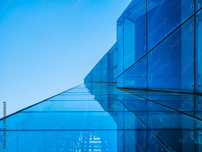 Modern building Glass facade Blue Reflection Architecture details Art background