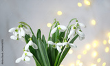 snowdrop flowers close up, abstract blurred light background. Blossoming gentle snowdrops, symbol of spring season. freshness aroma, harmony of nature
