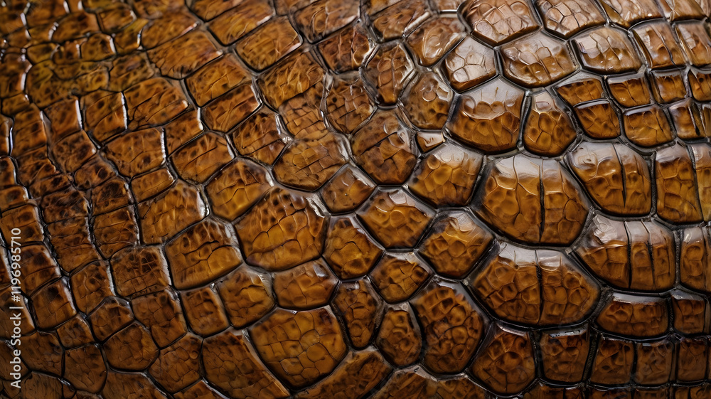 Detailed close up of rough brown reptile skin pattern with scale texture