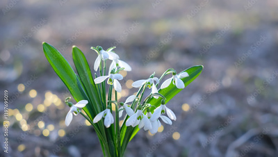 spring nature background. blossom snowdrop flowers close up, abstract natural backdrop. Beautiful gentle snowdrops, symbol of beginning of spring, early spring season. selective focus
