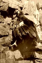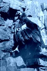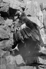 Black vulture, brown vulture birds of prey of the hawk family sits on rocks