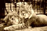 Two domestic lynxes lying in the sun, cute big cats. Pair of predatory animals