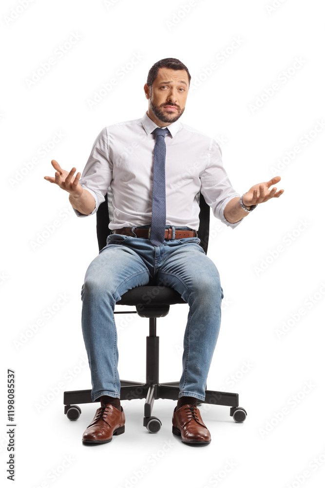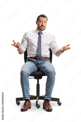 Pensive man sitting in an office chair