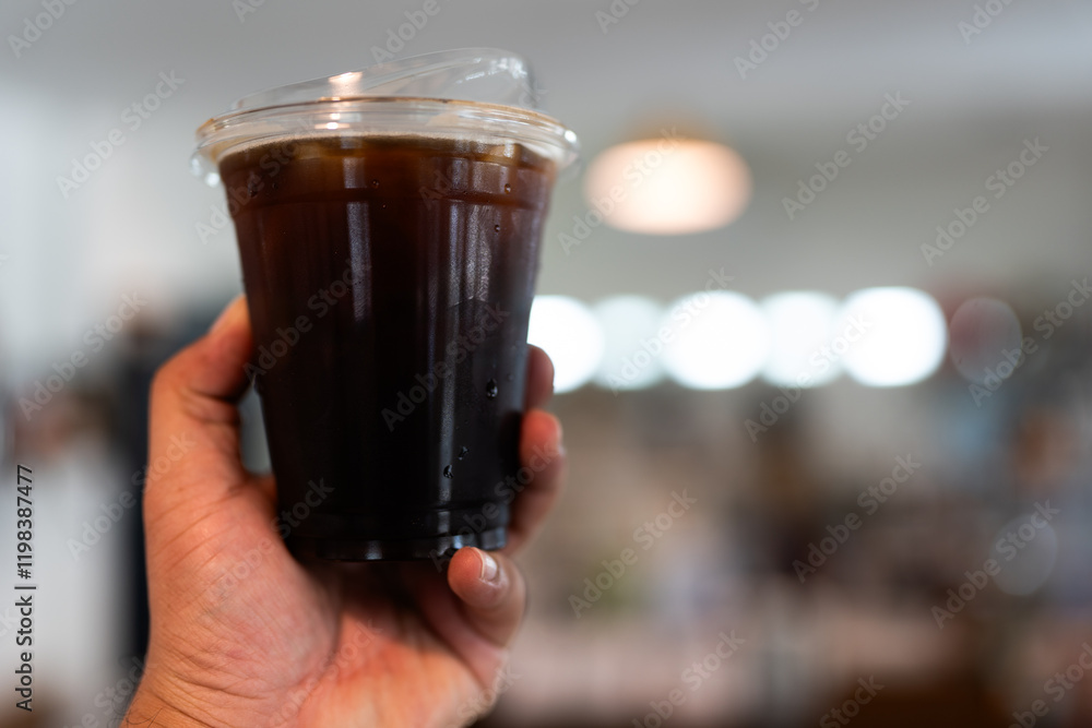 Iced black coffee or iced Americano on man hand