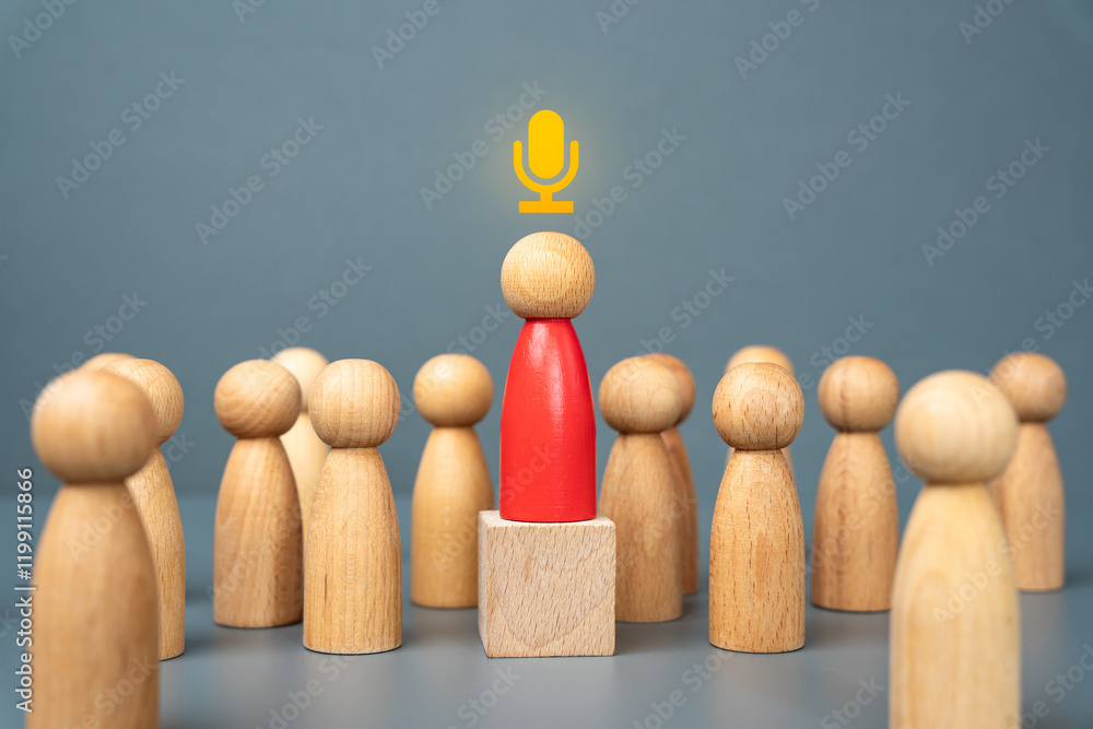 A man at a podium delivering a speech to his audience. Podcast or interview. Engaging discussions, shared stories, and influential voices shape modern communication.