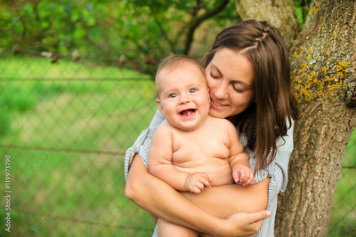 A young beautiful slim woman in a pink dress with her little cut