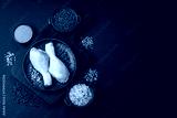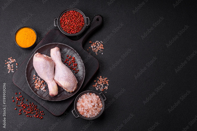 Raw chicken legs with salt, spices and herbs