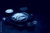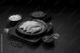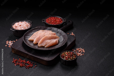 Fresh chicken fillet on a dark concrete table with spices and herbs