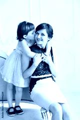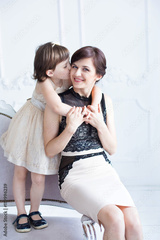 bright picture of hugging mother and daughter