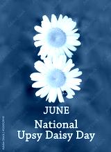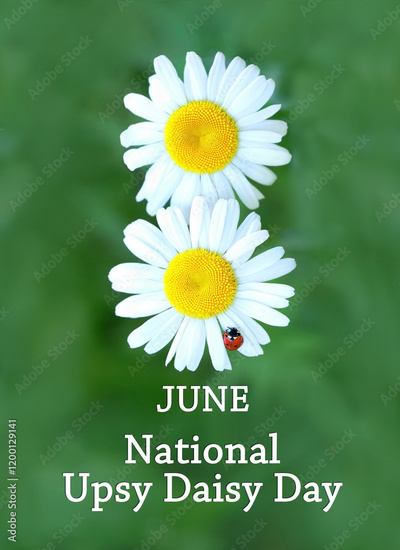 National Upsy Daisy Day. Ladybug on chamomile flowers close up, green natural background. spring summer season. symbol of Daisy Day.