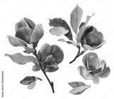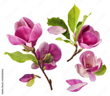 Beautiful pink Magnolia flower falling in the air isolated on white background. Zero gravity conception