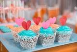 Wedding decorations with different sweets: macarons, cupcakes an