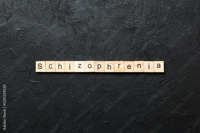 schizophrenia word written on wood block. schizophrenia text on table, concept