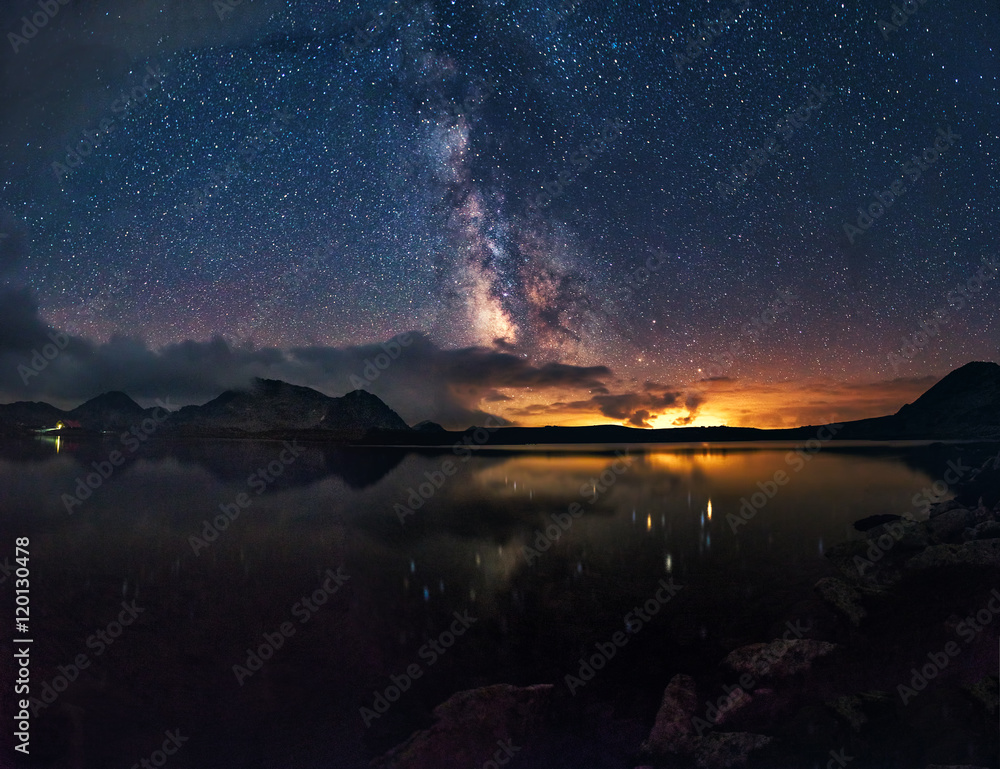 Milky way on over the mountain lake
