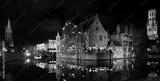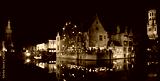 Bruges canals reflecting medieval architecture at night, belgium. Belgium tourism