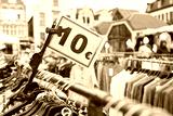 Clothes for sale at 10 euros in an outdoor market in belgium. Belgium tourism