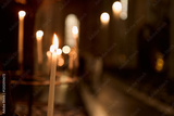Burning candles illuminating dark church interior in belgium. Belgium tourism