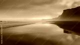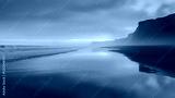 a serene beach at sunrise, with soft pastel tones and gentle waves lapping at the shore
