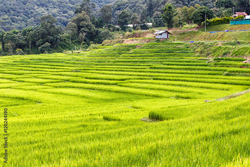 Green Terraced Rice Field in Mae Klang Luang , Mae Chaem, Chiang Mai, Thailand