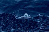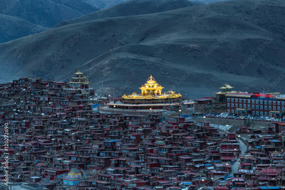 Top view monastery at Larung gar (Buddhist Academy) in sunset time, Sichuan, China