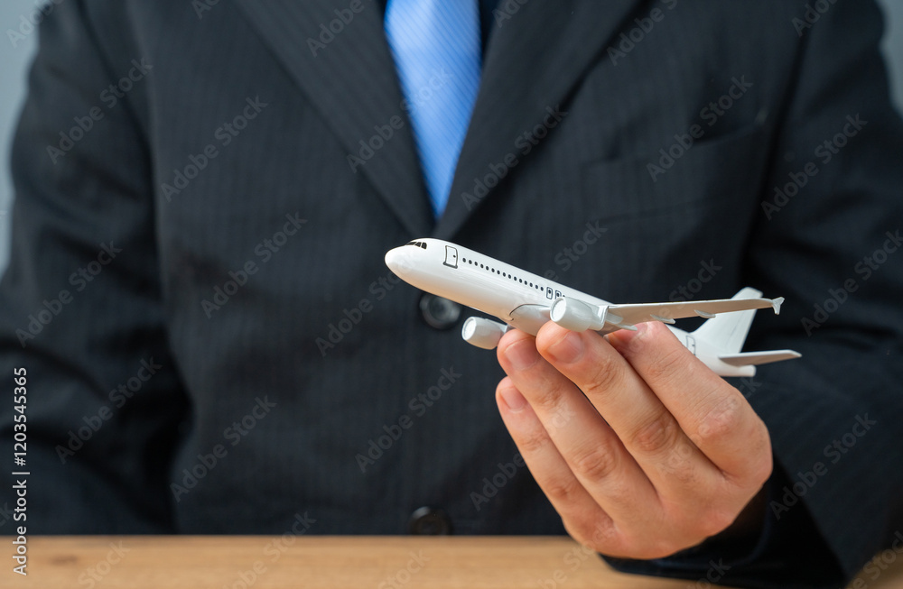 An airliner taking off in the hand of a businessman or official. Launching new flight routes and flights. Purchasing new aircraft. Expanding airfields and infrastructure amid growing passenger traffic