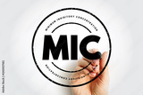 MIC Minimum Inhibitory Concentration - lowest concentration of a chemical, usually a drug, which prevents visible growth of a bacteria, acronym text concept stamp