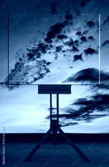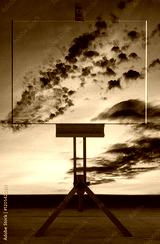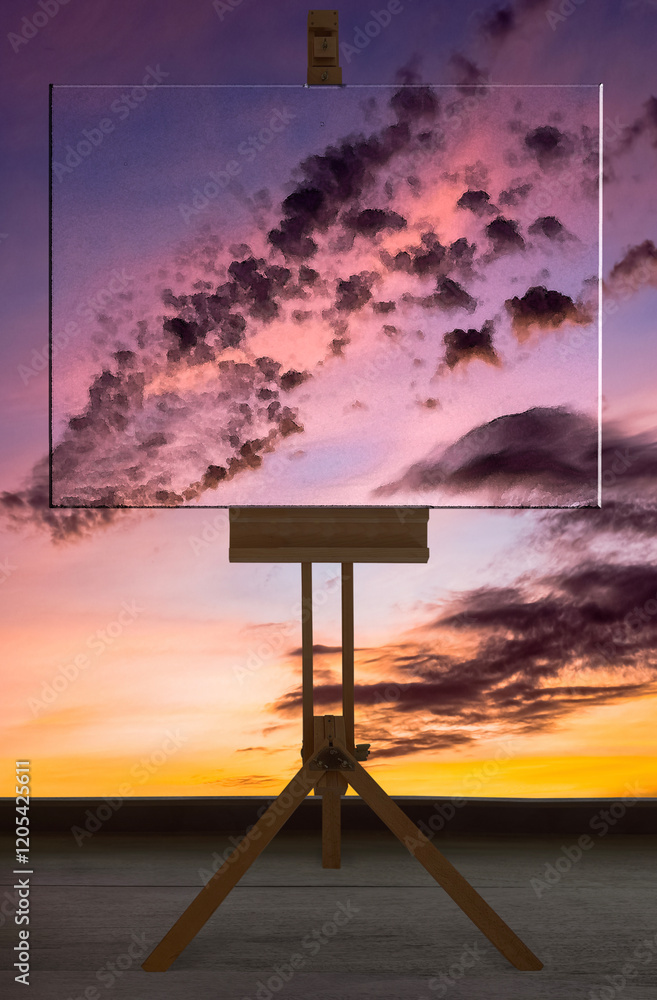 Peinture sur chevalet au coucher du soleil