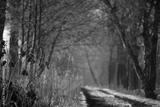Zimowy poranek, aleja drzew, przymrozek, szadź.