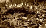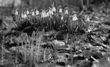 Spring floral background. beautiful flowers of crocus and snowdrops growing in garden or forest, abstract nature backdrop. Early spring season