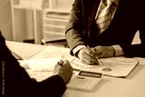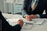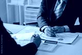A meeting to review organizational compliance with experts reviewing documents. Investment advisor, strategy, planning, accounting concepts Business advisory group meets to analyze finances