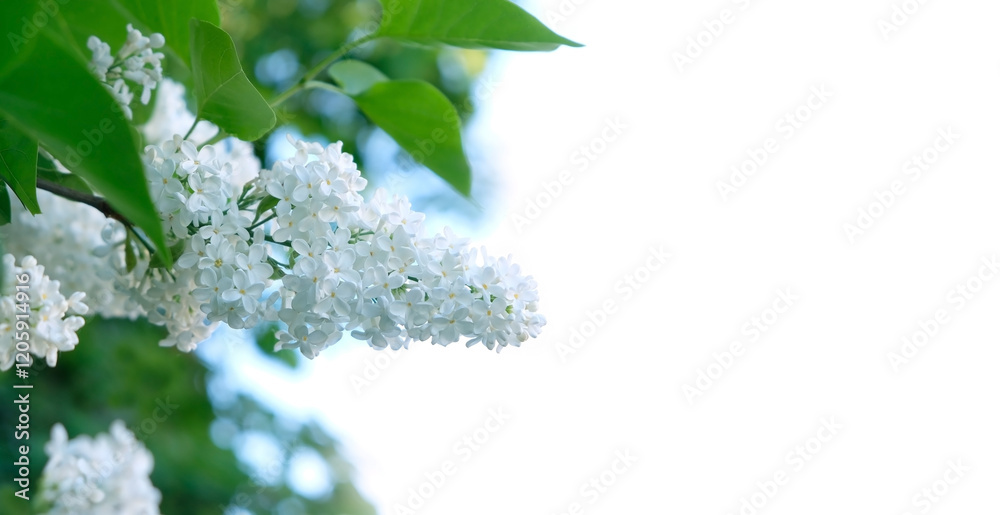 Spring nature background. beautiful white flowers of lilac tree close up, light abstract nature backdrop. Floral romantic spring image. soft focus. copy space