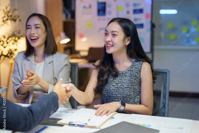Businesswomen shaking hands after closing a deal during a corporate meeting