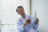 Asian doctor showing radiography to patient during medical consultation in hospital office